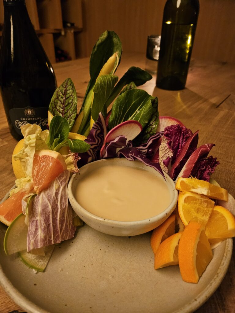 Pairing: Crudités with Walla Walla onion & shiro miso sauce
