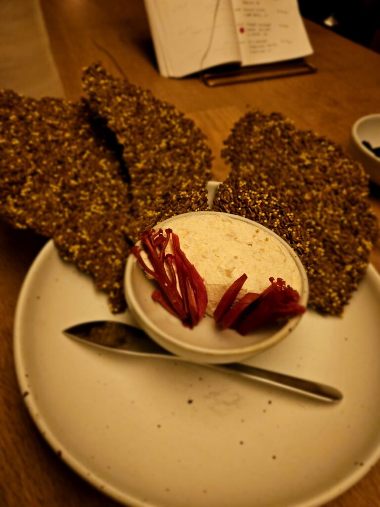 Pairing: Smoky mushroom mitake over bean purée